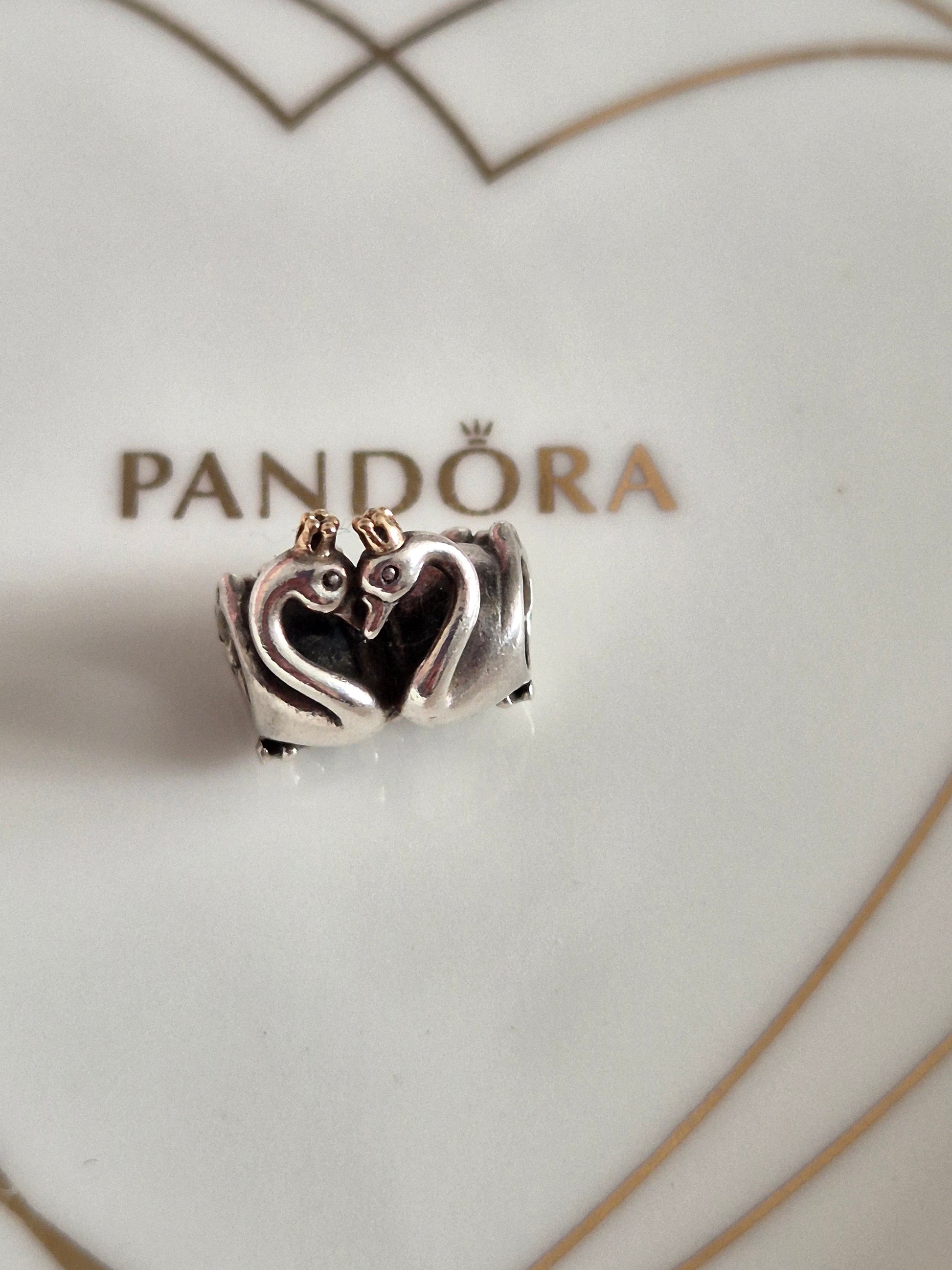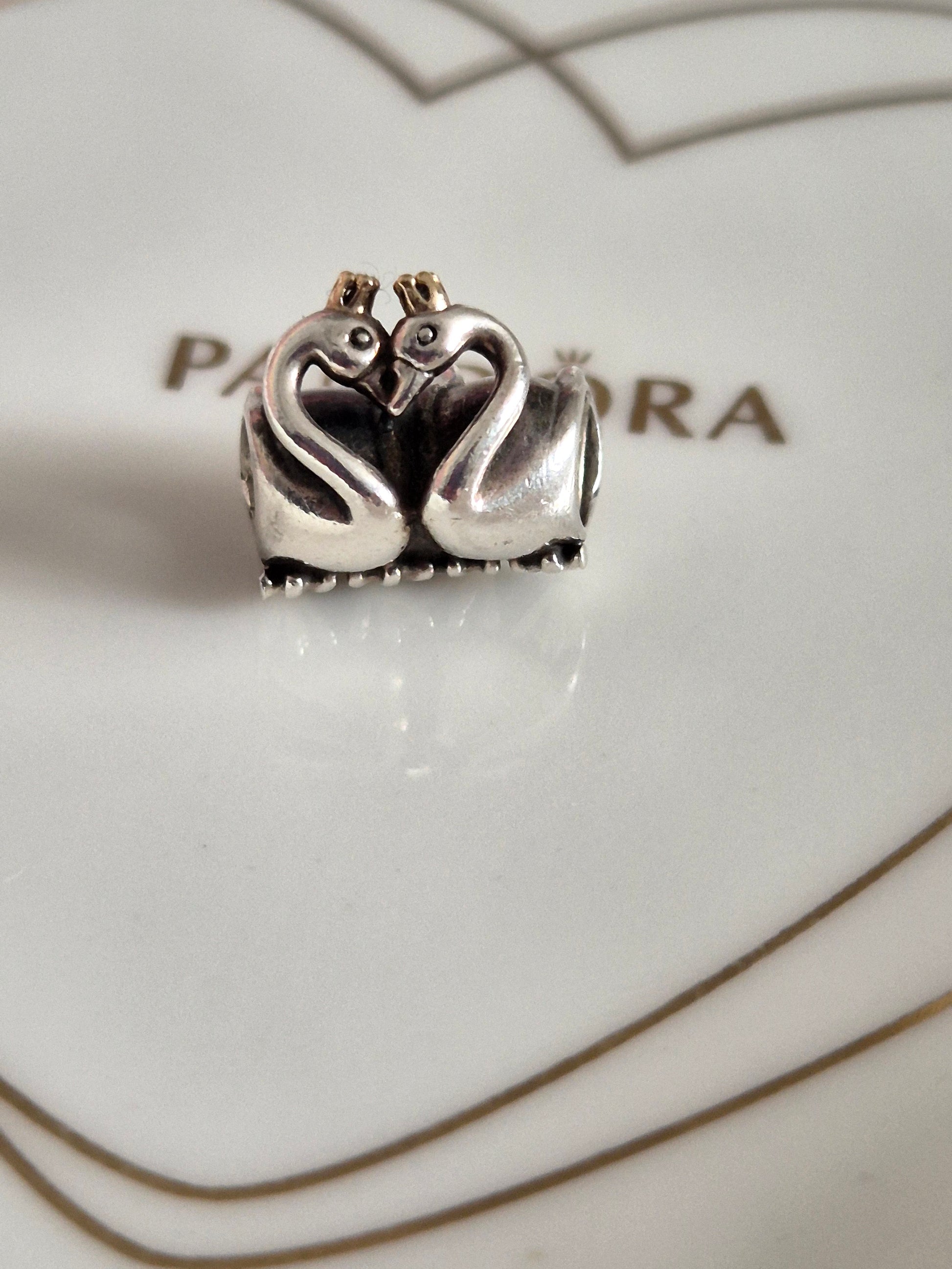 Genuine Pandora Silver & 14k Gold Swan Embrace Charm