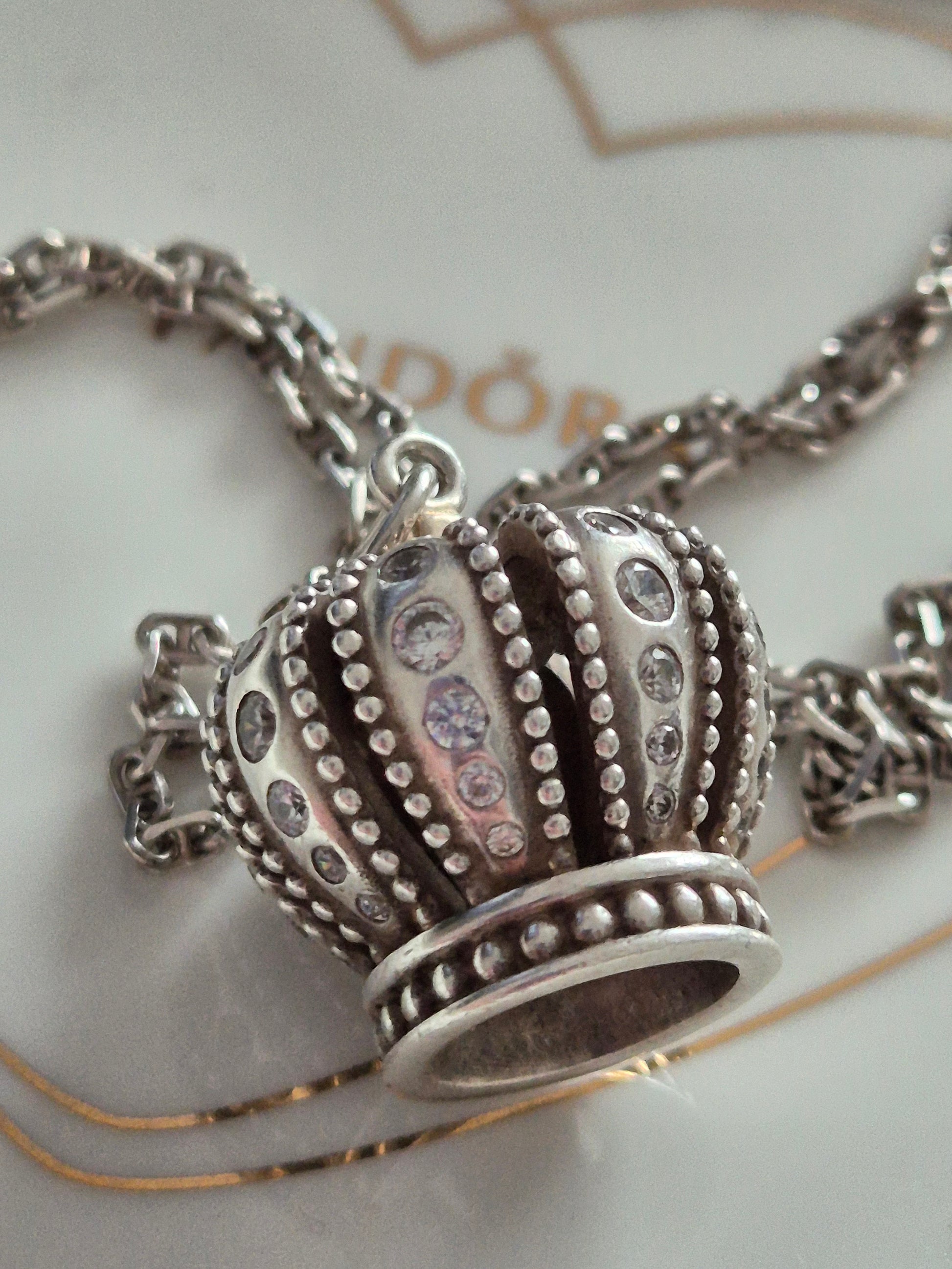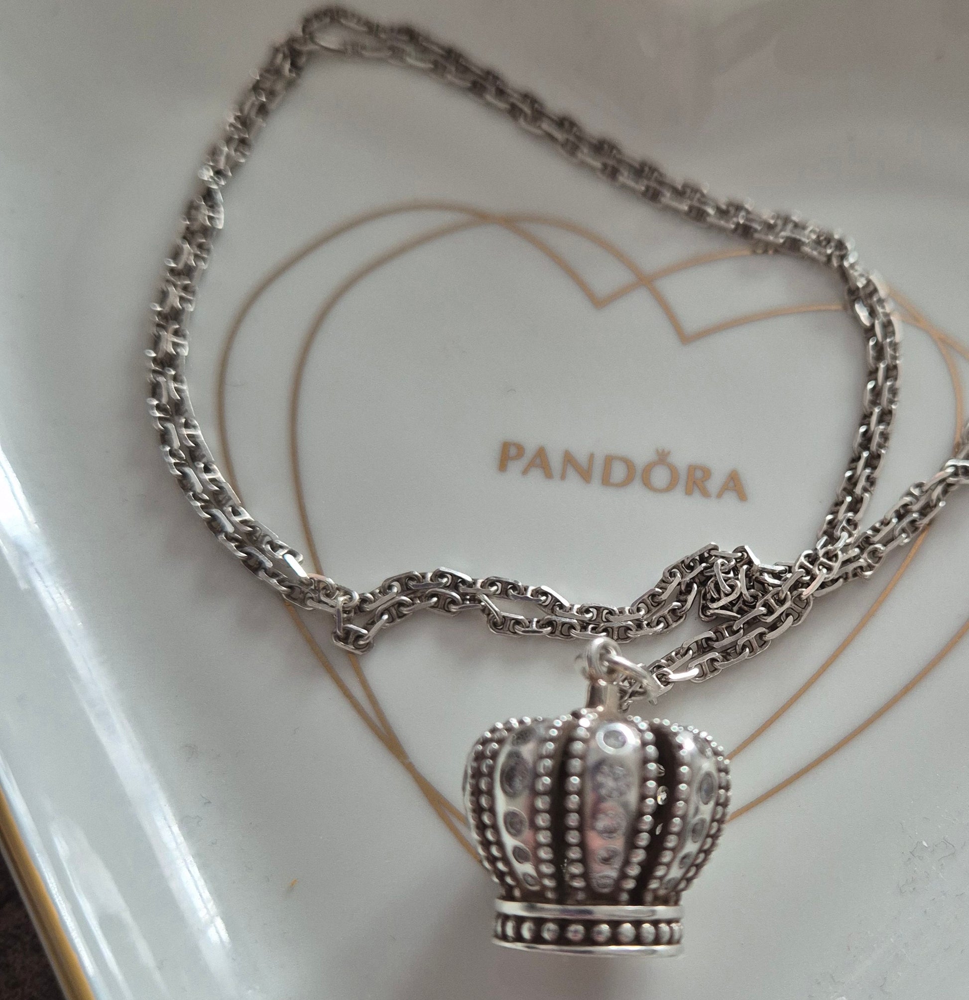 Retired pandora large crown pendant and necklace